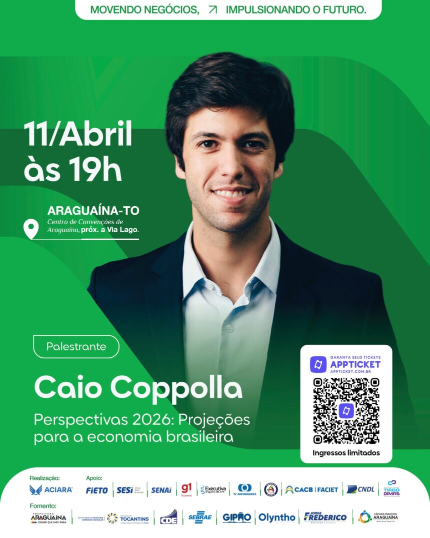 20h – Palestra – Perspectivas 2026: Projeções para a economia brasileira – Caio Coppolla – *Parceria Sebrae/TO* – ingressos disponíveis no Instagram @aciaraoficial