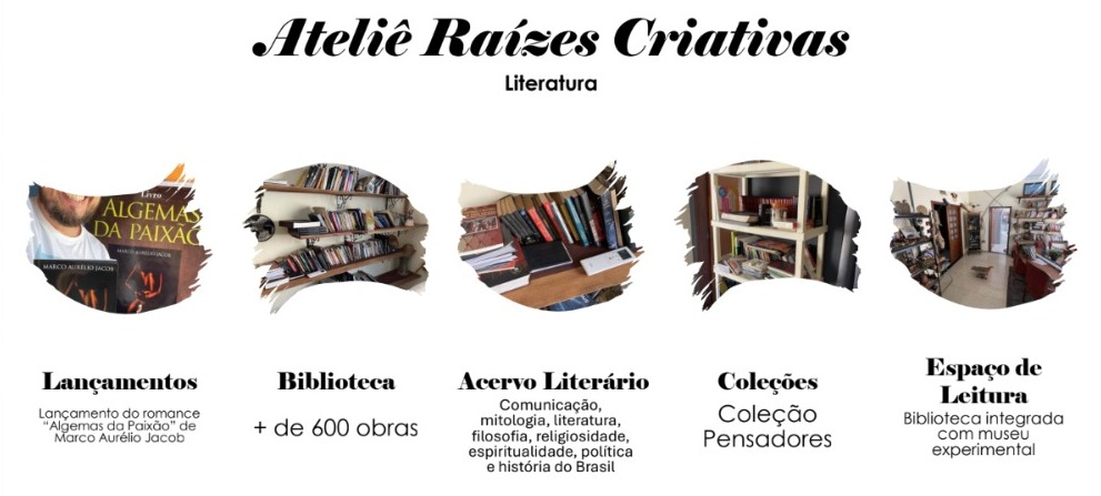 - Biblioteca: Conta com um acervo de mais de 600 livros, focados em mitologia, literatura, filosofia, política e história do Brasil.